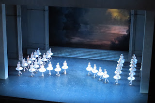 I especially adored the choreography for the swans. I was seated in the 2nd tier - so very very high up – but it was the perfect place to see all the details of the choreography and detailed it was. There were 32 swans at times on the stage and it was sight to savour – thankfully Paris Opera Ballet utilise proper “pancake” tutus so all the better for effect. The swans entered the stage very much like the Shades in La Bayadere as they snaked across and down the stage to form their bolt straight lines. The swans were really well “together”, moving as one with lines so straight and moves so well executed that there can only be the Mariinsky that is better when it comes to swans, in my humble opinion. The swans moved as if on air around the stage going from a circle to a pointed V moving forward towards the audience.